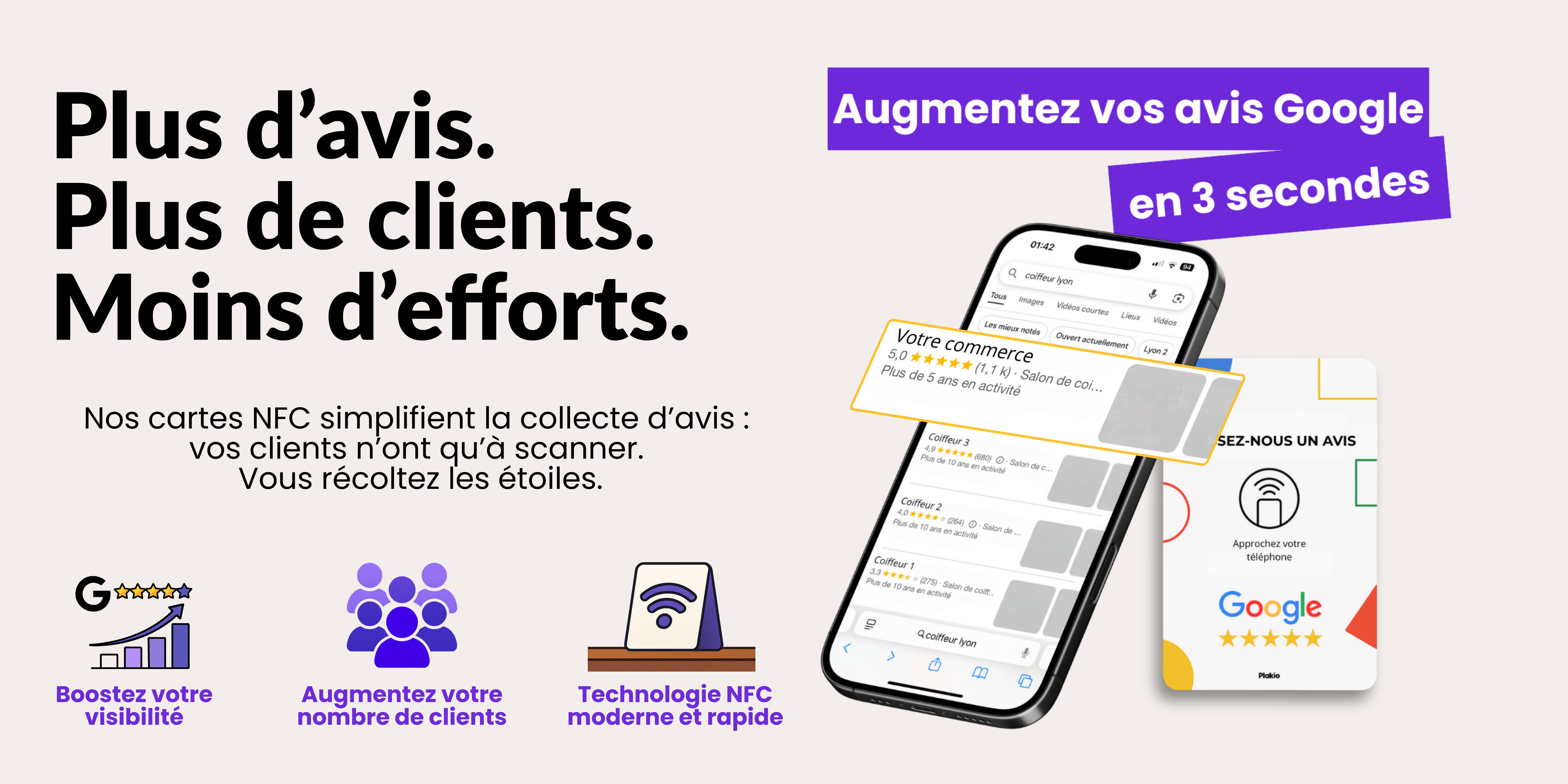 ✔️ Améliorez votre visibilité locale : chaque avis renforce votre réputation et attire de nouveaux clients sur Google.