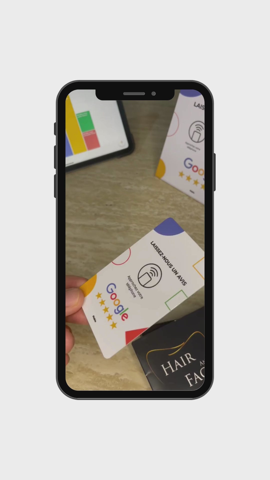 Il suffit d’approcher le téléphone de la plaque pour ouvrir automatiquement le lien configuré (avis Google, site web, réseaux…).