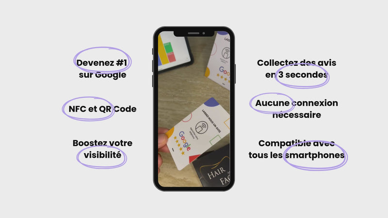 ✔️ Générez plus d’avis clients facilement : Recto NFC ou verso QR code : vos clients choisissent, et accèdent instantanément à votre page Google.